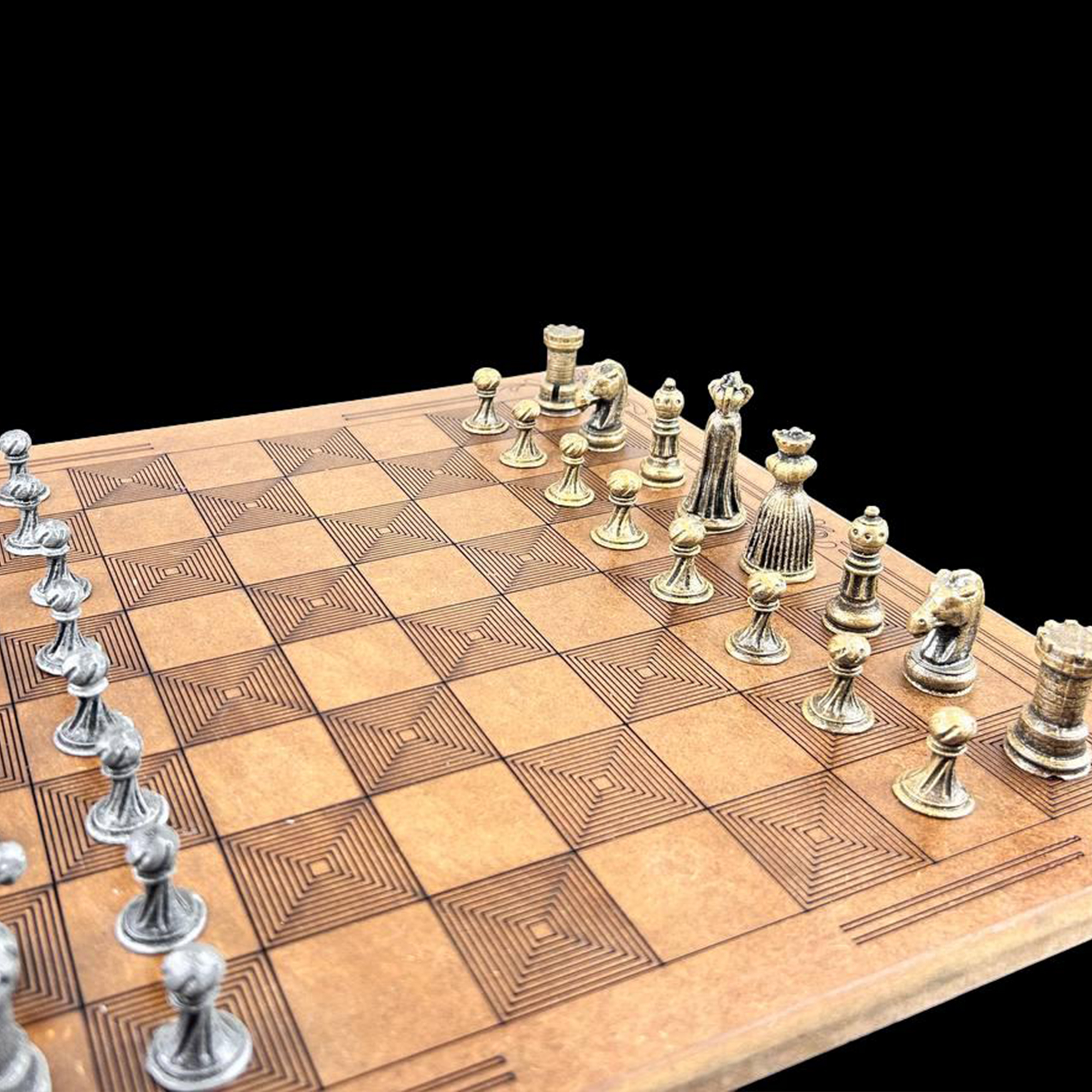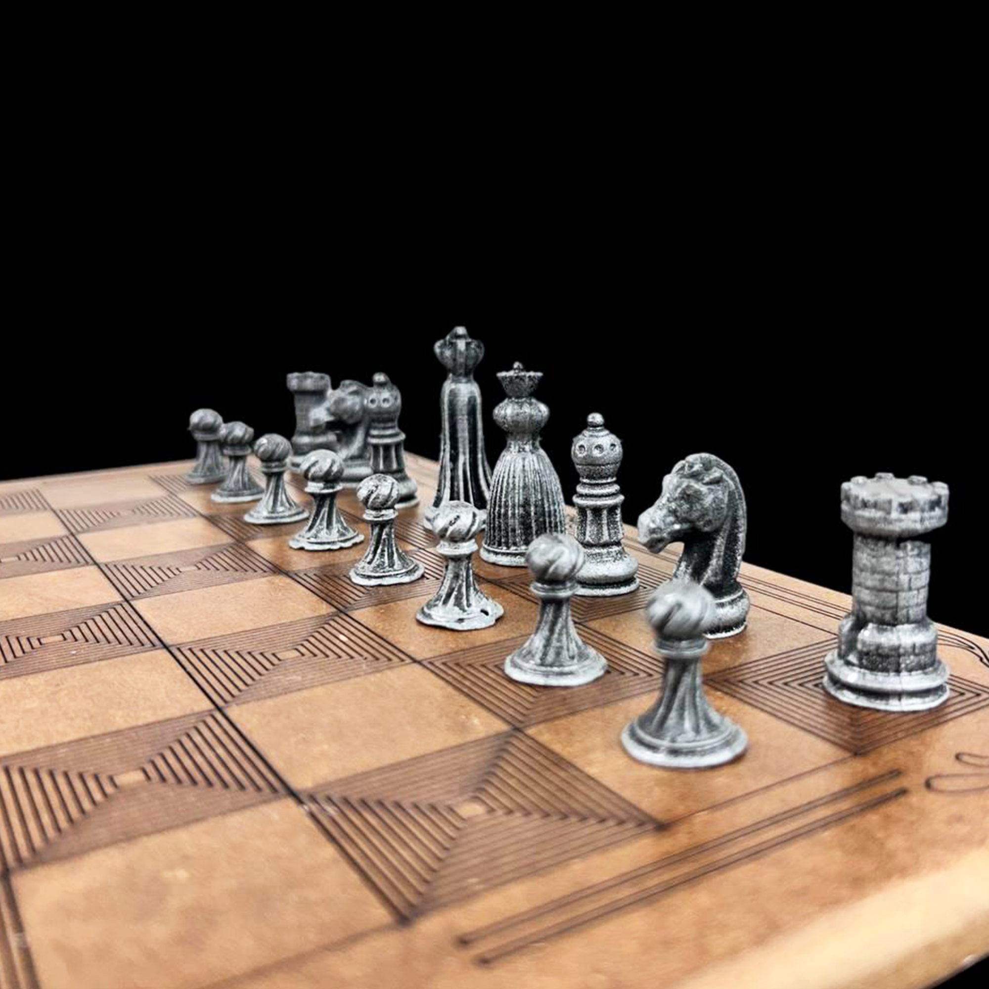 Satranç Tahtası tamamen ahşaptan çok özel bir şekilde gravürlenerek üretilmiştir.