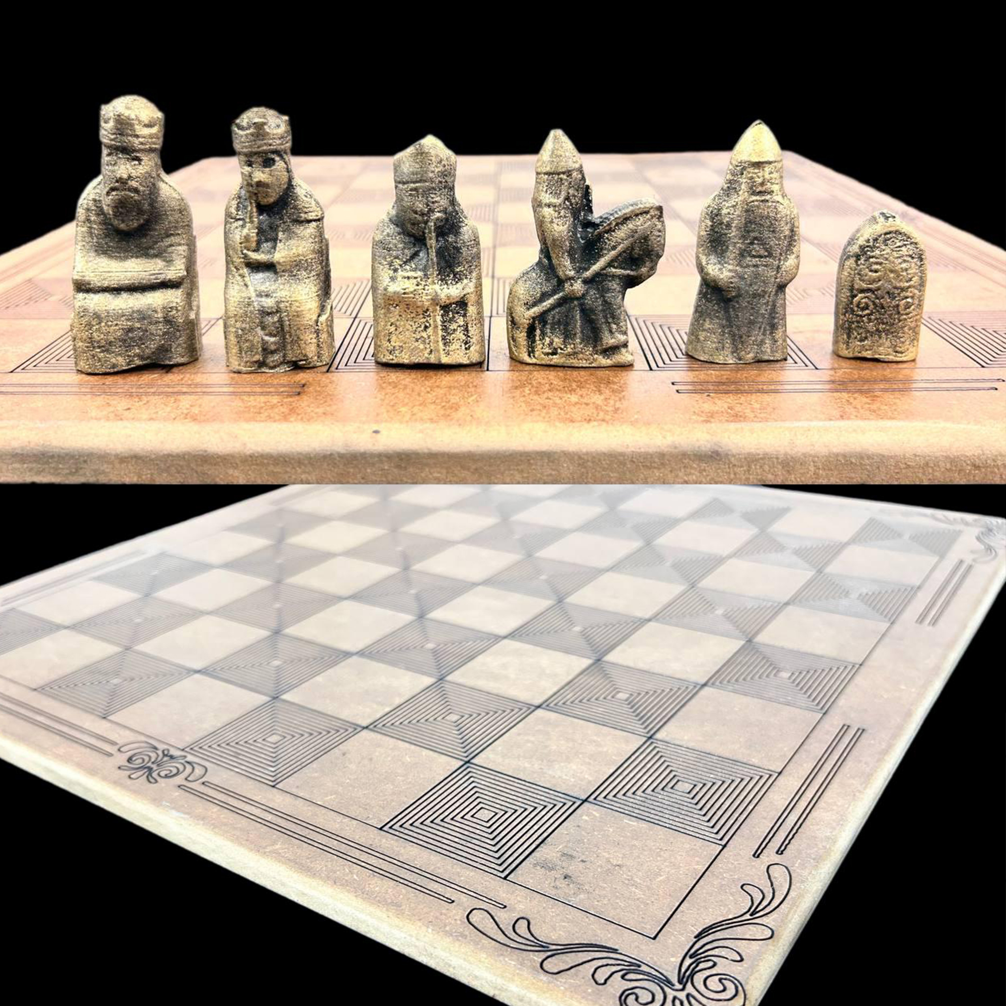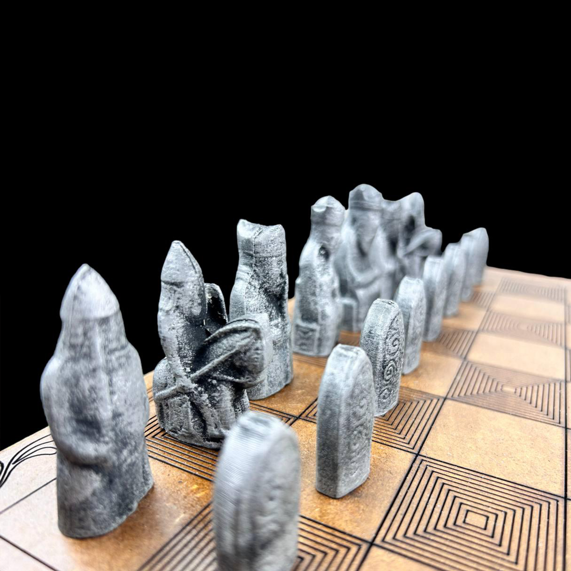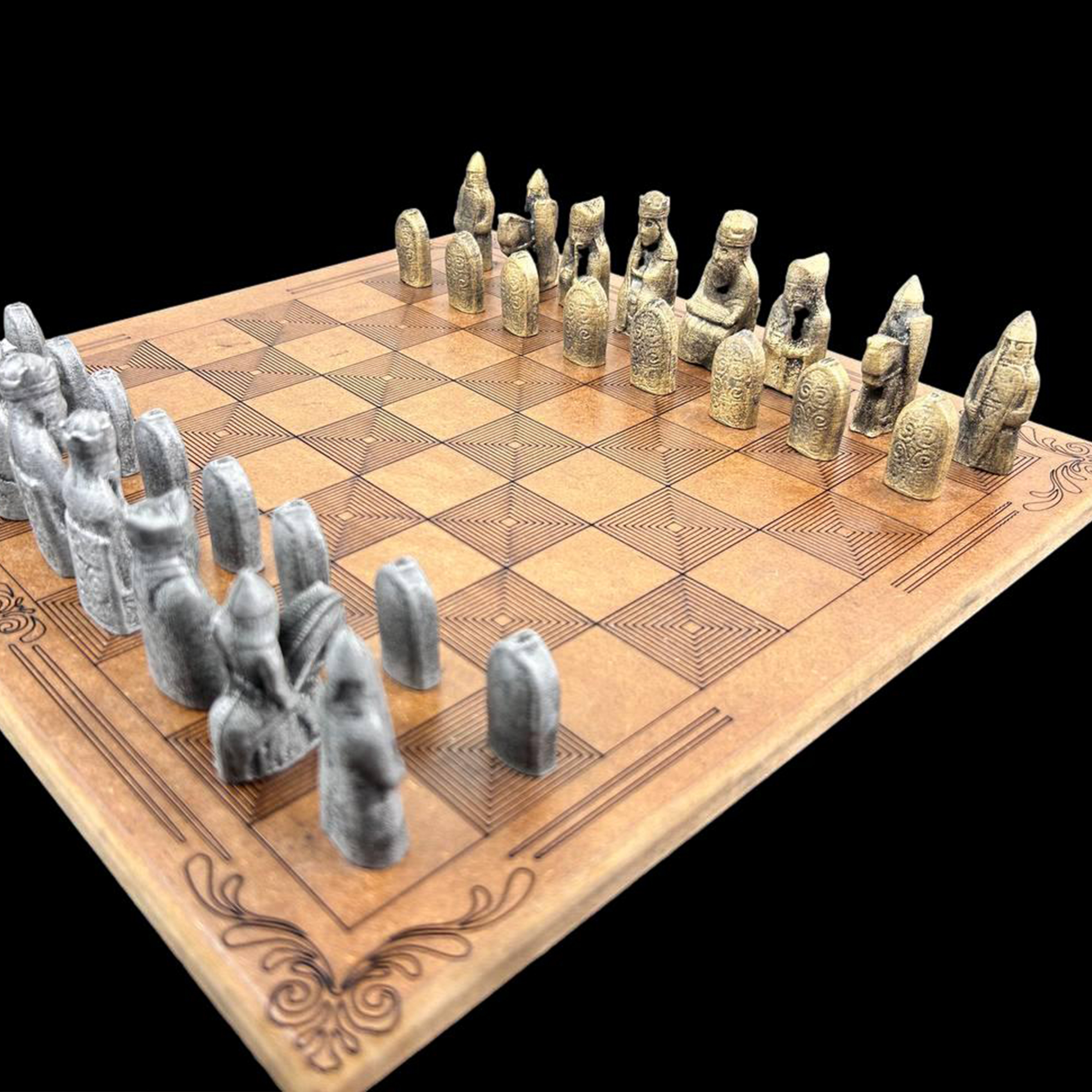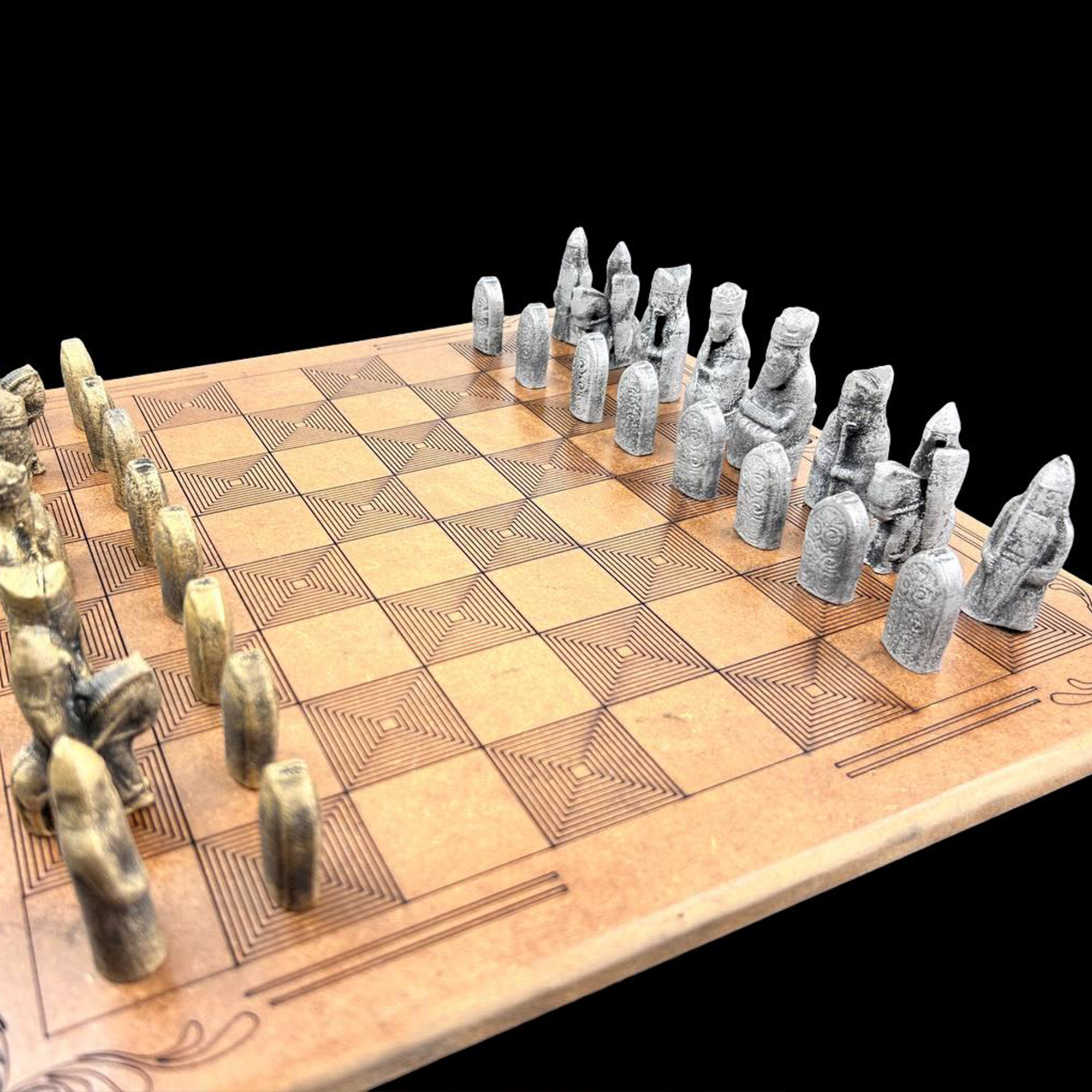 Satranç Tahtası tamamen ahşaptan çok özel bir şekilde gravürlenerek üretilmiştir.